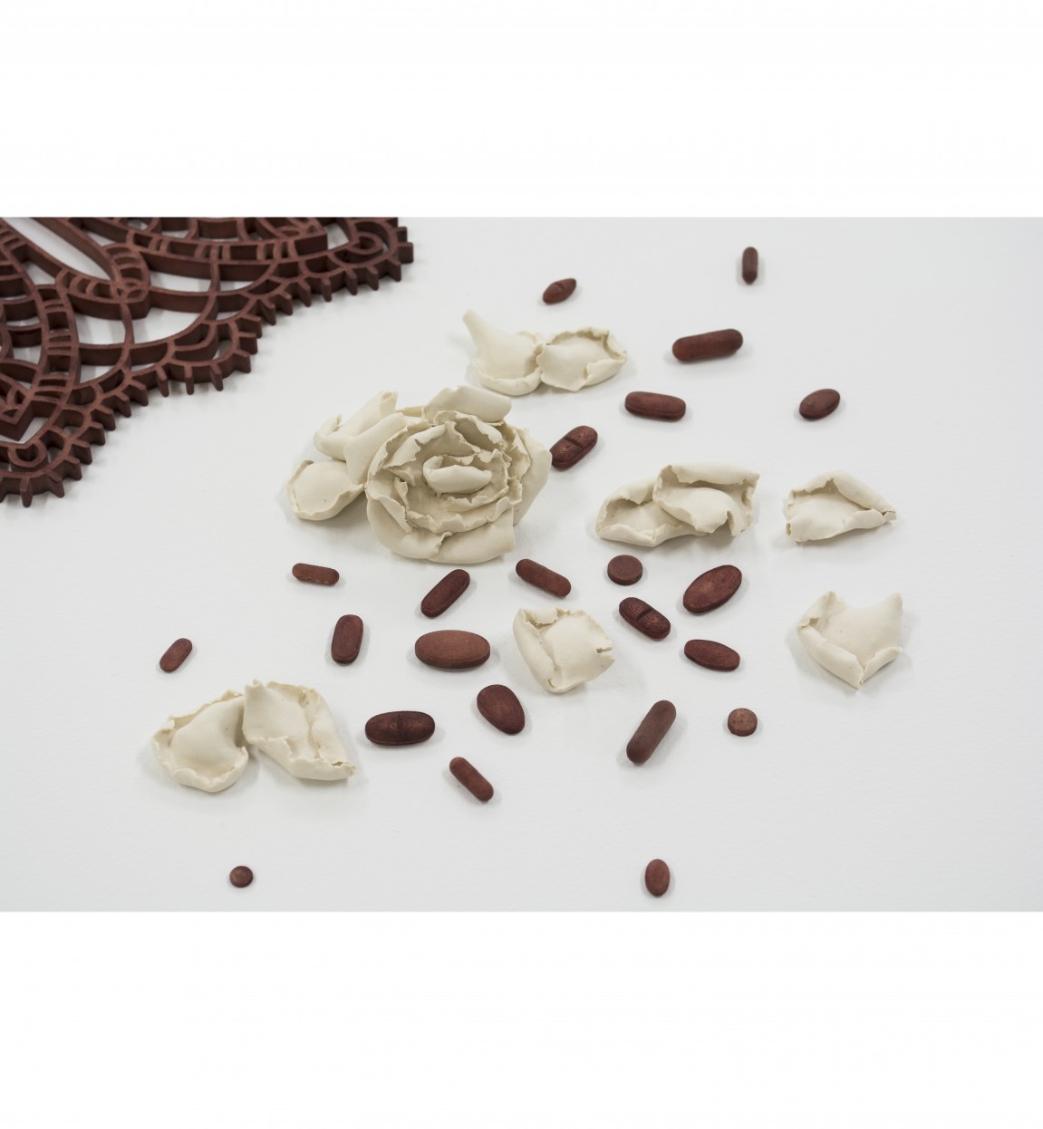 This project led me down numerous paths of biomedical investigation in order to produce the work. Virus (2002), a series of drawings, involved research into viral structures. The drawings in Elaborative Encoding (2007) were inspired by neuroscience studies of the formation of memories: I was struck by the poetic implications underlying the encoding of memories using information that we already know to form an elaborate web of related memories and knowledge. This notion became the basis for drawings of doilies, drawn thread-by-thread, with frayed dendrite-like ends between the gaps of the patterns. Host (2014), a series of sculptures and works on paper, draws on my memories of AIDS arriving as an unexpected guest at our quaint home in the 1980s and quietly announcing itself in hollowed cheekbones, sunken eyes, and Kaposi sarcoma lesions. The work was a reflection on coming to consciousness about HIV and AIDS while coming of age in the suburban South. However, in addition to drawing from my personal experience, I researched the sociopolitical history of HIV and AIDS and collected oral histories from family members for this work.