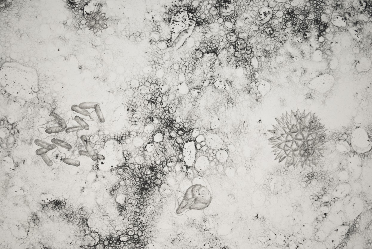 Laura Splan. Surface Tension, 2011 (detail); graphite and soap residue on Claybord; 18 x 24 x 2 in.