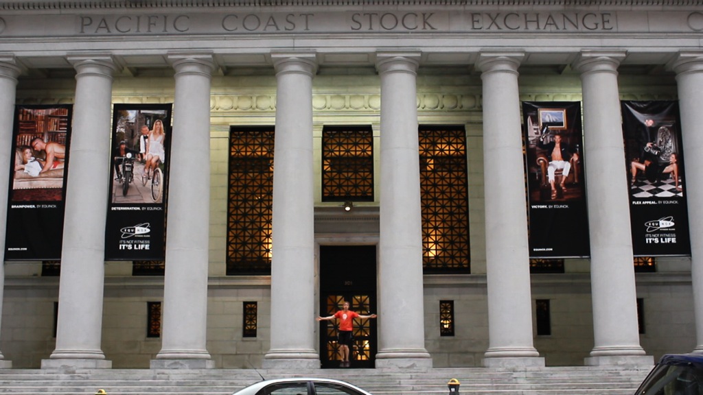 Working alongside a virtual avatar broadcasting from various sites marked by economic systems—including the former Pacific Coast Stock Exchange (now an Equinox gym), oil refineries, cattle fields and foreclosed homes—Nagler brought these two practices together in a kinesic experiment in information processing, pairing clarifying lessons on liquidity, derivatives, FOREX exchange, commodities futures, and Sharia finance with vigorous aerobic warm-up and group movement exercises.