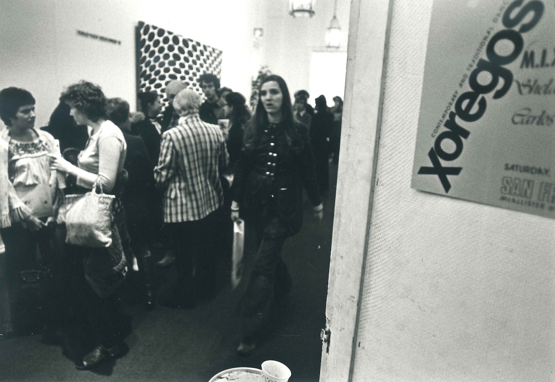 Reception for performances of Xoregos Dance Co. and Carlos Carvajal Dance Spectrum at SFMA galleries on Van Ness Avenue San Francisco, November 1973. Courtesy of SFMOMA.