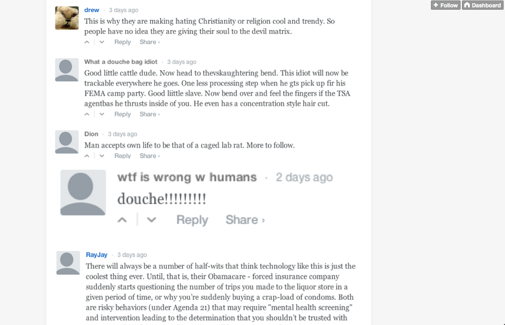 Net Art Implant’s severance from its original meaning and audience was complete when right-wing Christian blogs picked up the story. Likely emerging from the coverage by Fox News, a series of online articles, comments, and discussions attacked the merit of Antonellis and his actions, which many Christians took to be the mark of the beast. While these discussions at times mention that Antonellis is an artist, that fact likely serves as insufficient rationale in these forums for his doing the work of the devil. Antonellis’s identity went from performing net-based artist to weird-tech artist to satanist in a matter of days.