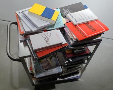 A stack of art publications at the Kadist Foundation, San Francisco.