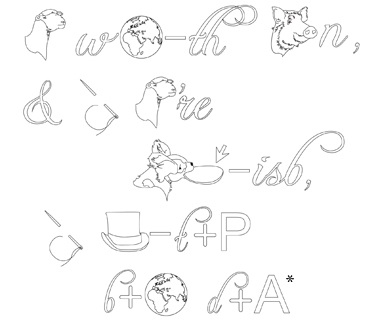 The endnotes of this essay appear in one of Paul Chan’s 11 Alternumerics fonts, which can be downloaded for free from his website. In one, The Future Must Be Sweet—After Fourier (2001), each typed letter is comprised of a map of words. It is based on a system of key-for-key substitutions: