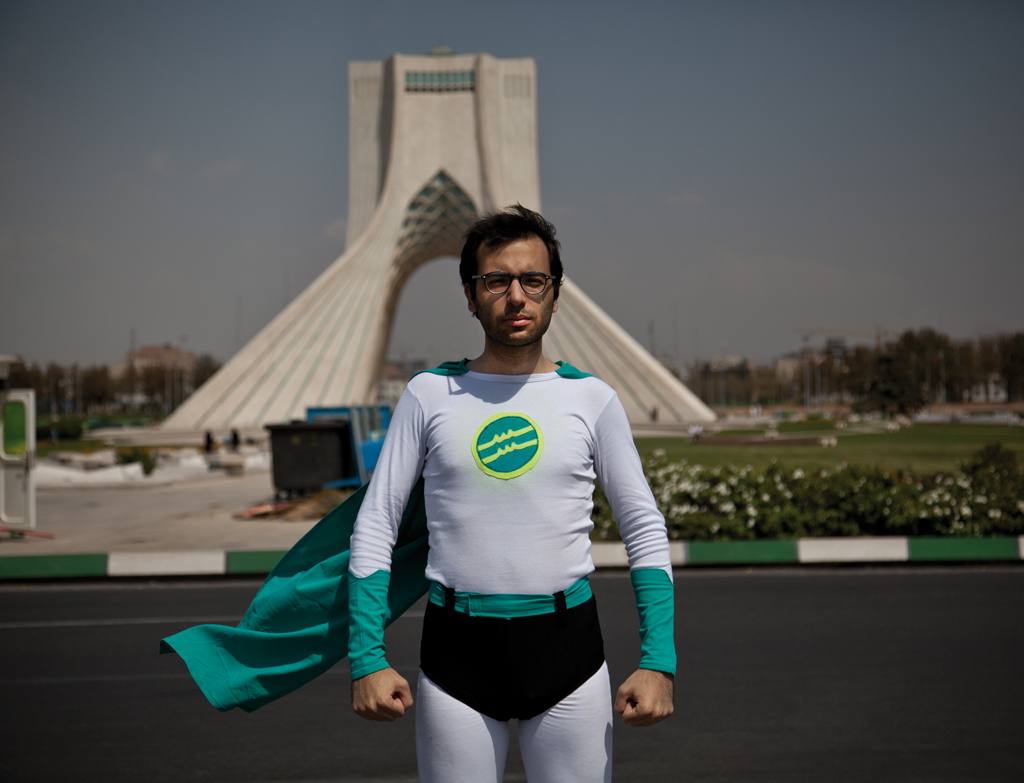 In a Guardian story about restrictions by the United States government on art exchanges with Iran, SuperSohrab, the alter ego conceived by the Tehran-based artist and curator Sohrab Kashani, was deemed “a symbol of the contemporary Iranian art world.”1 An awkward denizen of Tehran, wearing thick glasses and brightly colored long underwear, SuperSohrab is ready to flee into the relative safety of the Web, where he will continue shifting the performative toward the informative, clicking the time away. Kashani is of the generation that came of age in this century, absorbed unfiltered information on the Web, learned to code before learning to write, and created art in rooms with windows tightly shut against the outside world yet open to it via hidden satellite dishes on roofs. This generation does not identify itself via symbols but rather via shifting, often borrowed, signifiers, like a DIY superhero costume replacing a chador (most artists do not wear either of these garments in their everyday lives). The personal stories of this generation do not adhere to or even engage with the news, but a news item requires a story. Even the greatest leak in recent history concerning panoptic preoccupations of the state (the Edward Snowden story), was conveyed by The Guardian as a tale of a whistleblower, a filmmaker, and a journalist, their adventures unfolding in near-real time in hotel rooms and transit zones.
