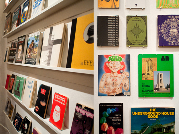 We came indoors to the gallery space with Scanners, and the display strategies of the flea market spread out. While some of the store was arranged in a conventional fashion (books on shelves, spines out), at least seventy percent of Scanners was devoted to face-out display. It was important that visitors could clearly see the covers of the books. From our experience at the flea market, we knew that people were interested in the books we had laid flat on the tables simply because they were more visible.