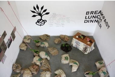 Natasha Wheat, in collaboration with Sarah Magrish Cline and Mark Gravel. Bean In, April 2010; installation view, California College of the Arts, San Francisco. Courtesy of the Artists.
