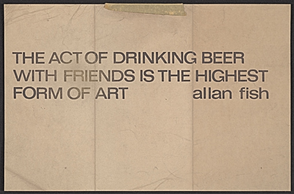Allan Fish (Tom Marioni). The Act of Drinking Beer with Friends is the Highest Form of Art, October 26, 1970; poster.