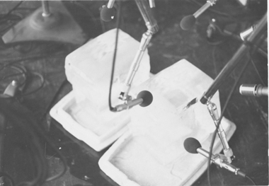 Central to the structure of MOCA was the fact that it was not a collecting institution. This lent itself to fostering Conceptual art that would be ephemeral and performative. Marioni says that everything that happened at MOCA in its first years was “action by sculptors.”4 In fact, the museum’s first public show was Sound Sculpture As. The April 30, 1970 performance included nine artists: Mit Arbeiten von Arlo Acton, Allan Fish (Marioni’s pseudonym), Terry Fox, Mel Henderson, Paul Kos, Peter Macan, Jim Melchert, Jim McCready, and Herb Yarno.5 Kos’ famous piece picked up the sound of two twenty-five-pound blocks of melting ice with eleven boom microphones. Henderson walked around the gallery space with a 30-caliber rifle, eventually firing a single shot at the image of a projected tiger. For McCready’s piece, four nylon-clad women walked down an ad hoc runway, rubbing their thighs together, creating a swishing sound.6 These abstract performances lacked any clear narrative, but they all took as their medium an embodied or physical aurality.
