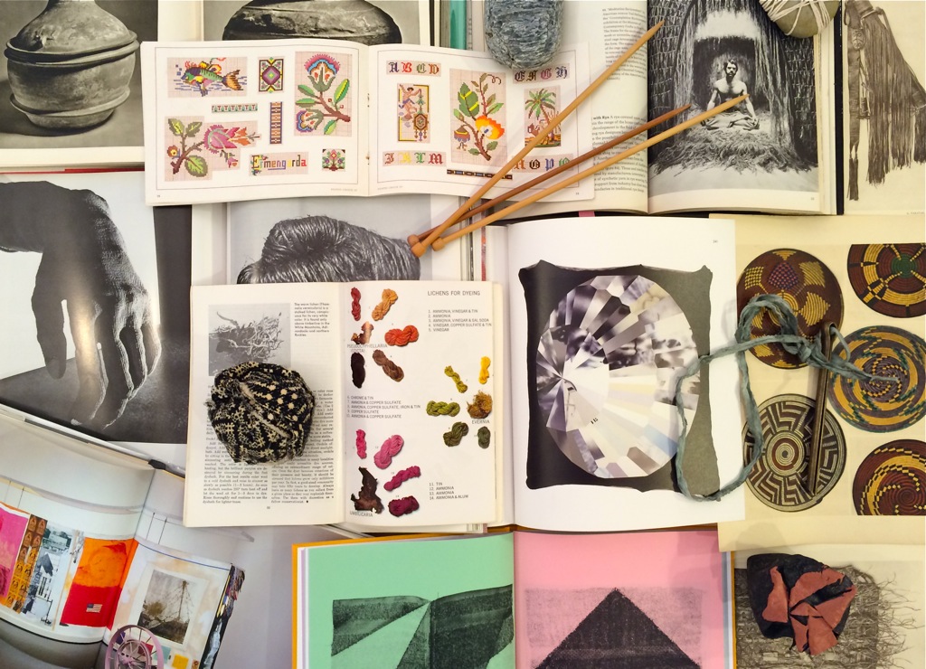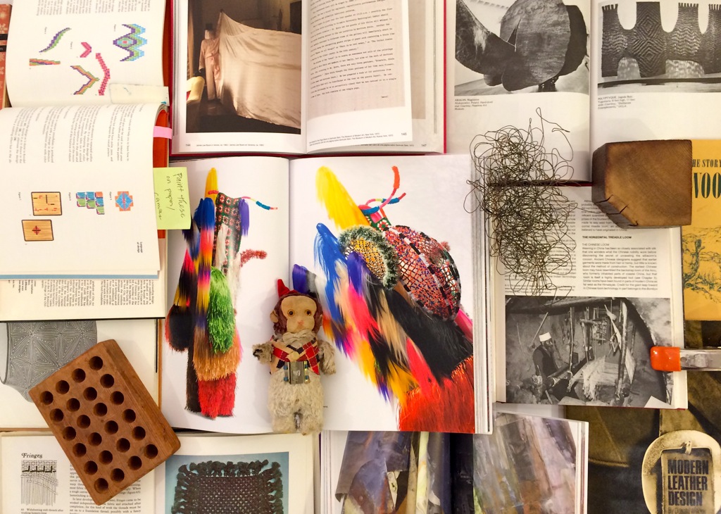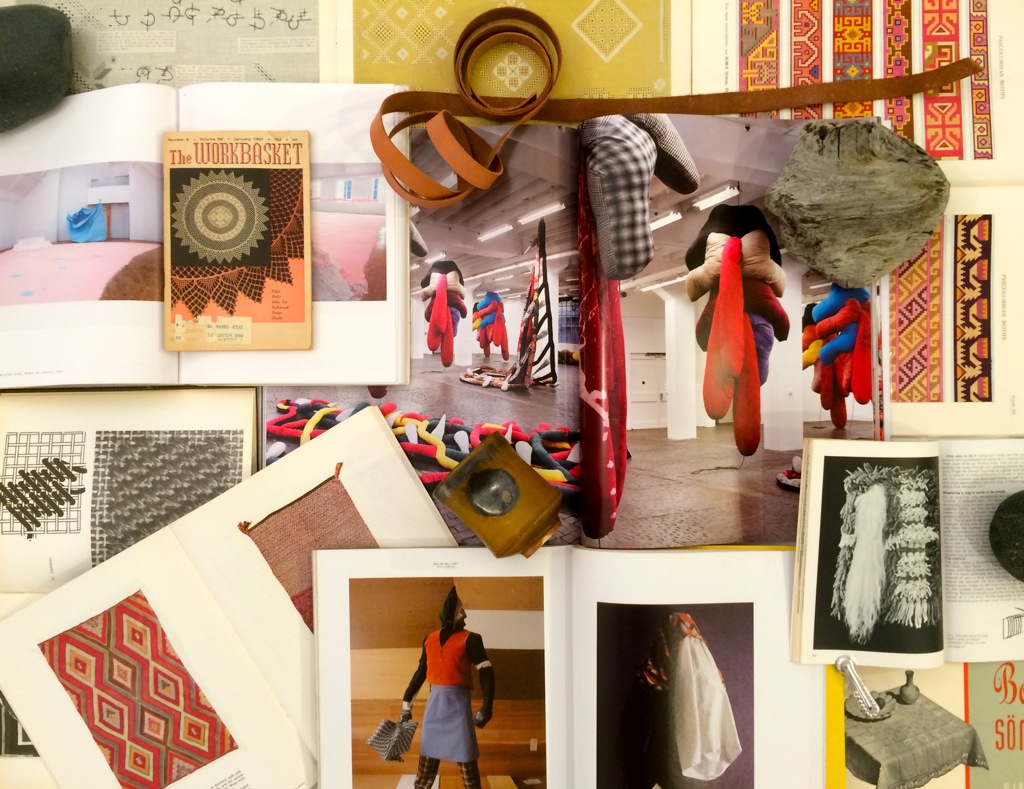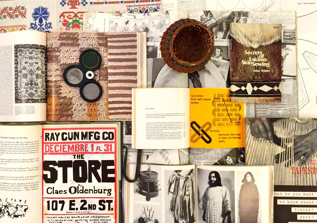 February 26, 2015Inspired by the 1969 Stedelijk Museum exhibition catalogue, A Document Made by Paul Thek and Edwin Klein, these photos explore—via books, publications, pamphlets, and artist monographs—the influence of craft and textile arts such as sewing and weaving on contemporary art. A bibliographic trajectory—beginning in the early twentieth century and continuing through textile arts’ heyday in the 1960s and ’70s—shows the influence of textiles and craft on contemporary art practice. A bibliography of the books contained therein appears below each photo.