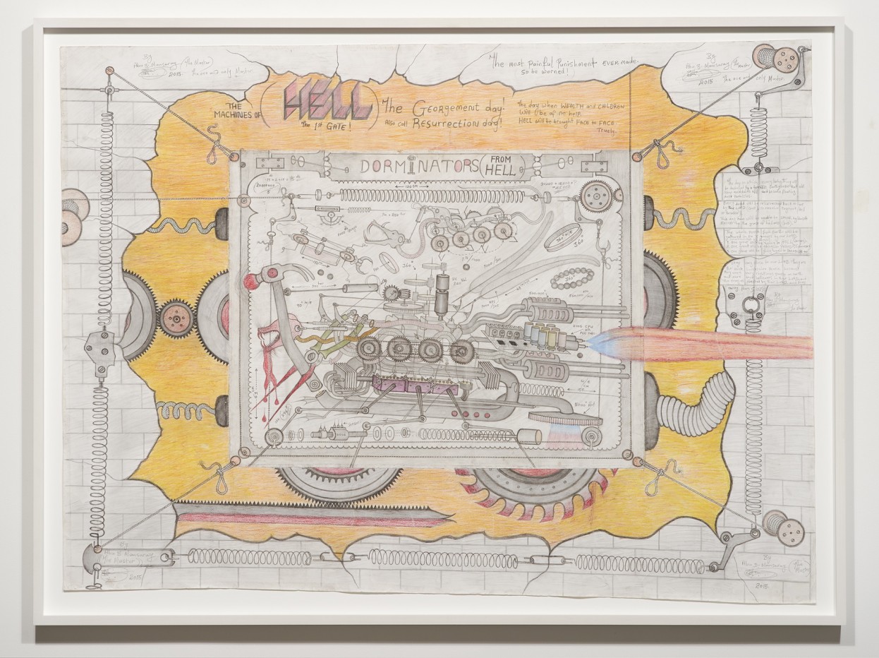 Abu Bakarr Mansaray. HELL, 2015; graphite, wax pastel, and pen on paper; 43 ¾ x 58 ¾ in. Courtesy of the Artist and Jessica Silverman Gallery.