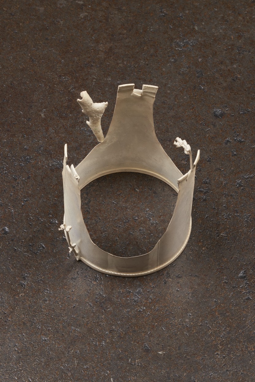 K.r.m Mooney. Ductile Structure 1, 2015; cast organic compounds, silver plated steel; 3 x 4 ¼ in. Courtesy of the Artist and Jessica Silverman Gallery.