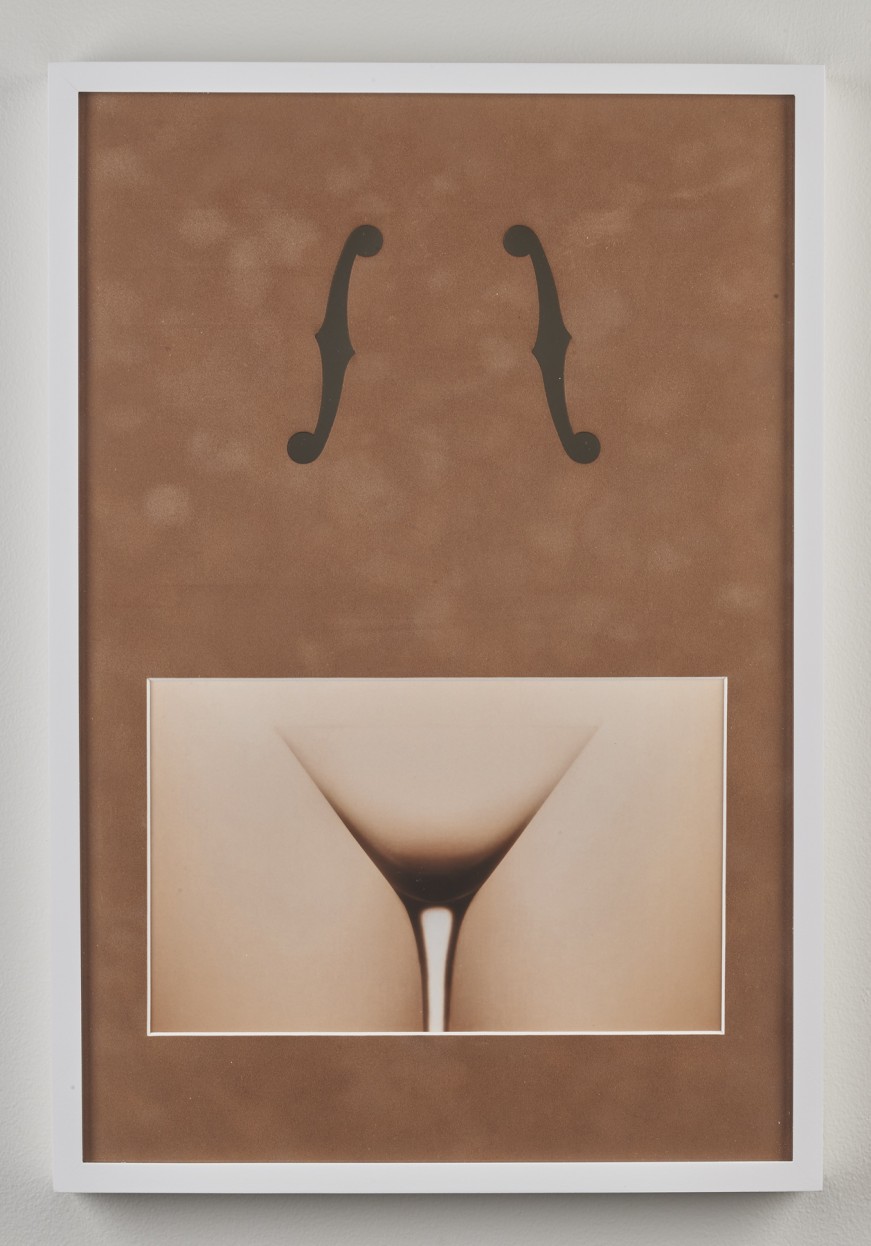 Sydney Shen’s stellar series F-Hole (2015) also employs visual humor to critique modes of looking that objectify female bodies. Shen’s prints of lamps that resemble breasts and armrests resembling buttocks may play like sight gags, but they also reveal how we are acculturated to eroticize the female anatomy through innuendo in visual culture. The f-holes die-cut in sueded matte board make a sly reference to Man Ray’s Le Violin d’Ingres (1924), which notoriously depicts a nude woman with violin f-holes marked across her back. Shen’s work not only presents a very modern commentary on gender, but also engages—and critiques—photographic genealogies of female bodies.