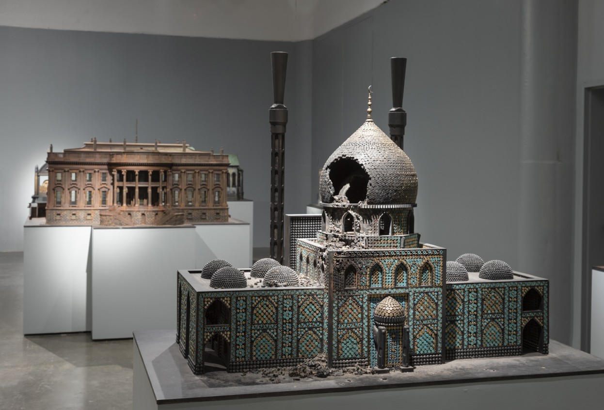 Al Farrow. Bombed Mosque, 2010; installation view, Divine Ammunition, 2018-2019. The Museum of Craft and Design. Photo: Henrik Kam.
