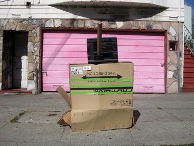 Brion Nuda Rosch and Chris Sollars. Neighborhood Assemblage, 2009; cardboard, tape, and stereo. Courtesy of the Artists and Hallway Projects and 667 Shotwell, San Francisco.