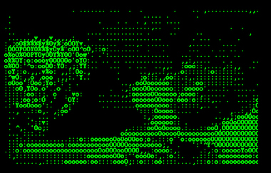 December 8, 2010The flickering green blowjob is both radical and passé. The alphanumeric pixels depict an ambiguously famous sex scene. It is neither obscene nor safe for work. The video is part of ASCII History of Moving Images, a collection of Vuk Ćosić’s 1998 détourned film clips, on display on the UC Berkeley Art Museum and Pacific Film Archive (BAM/PFA) NetArt online gallery. The scene in question is a clip from the classic 1972 porno Deep Throat, also both radical and passé. Ćosić converts the film data into ASCII, the standard computer code that dates back to 1968. The minimal green-on-black motif recalls a Geocities aesthetic, and watching the videos nurtures an uncomfortable nostalgia for the dark ages of the World Wide Web—the mid 1990s. By dint of the rapid transformation of the web, Ćosić’s videos seem more aged than a work of Nam June Paik or even the Lumière brothers.