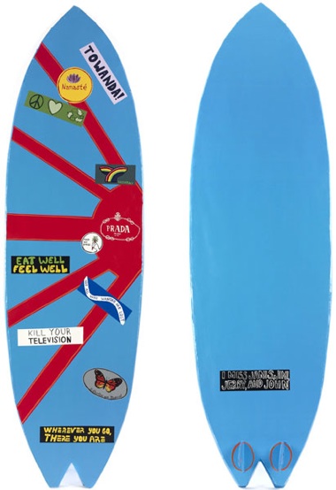 Prada Surfboard, 2010; paper, hot glue, and acrylic; 69 x 20 x 7.5 in. Courtesy of the Artist and Marx & Zavattero, San Francisco.