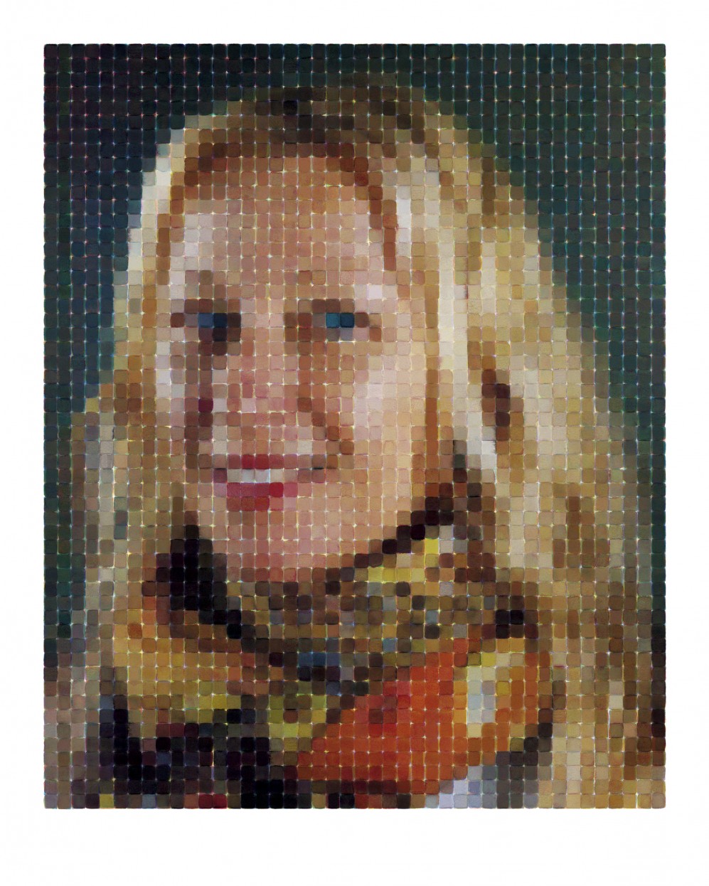 Chuck Close. Cindy (Smile), 2013; archival watercolor pigment print on Hahnemühle rag paper; edition 5/5; 63 x 53 inches. © Chuck Close, in association with Magnolia Editions, Oakland, and Pace Gallery, New York.