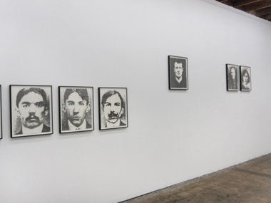 The portraits are framed very simply in somber black and are grouped on the walls in a way that implies particular relationships among La Bande à Bonnot's members. Though the press release discusses the artist's interest in the gang's technological sophistication and "attempt to resist the weight of conditions that still suppress today," the portraits seem less politically motivated and more a way toward a compassionate understanding of this group by manifesting it, touch by touch, mark by mark.