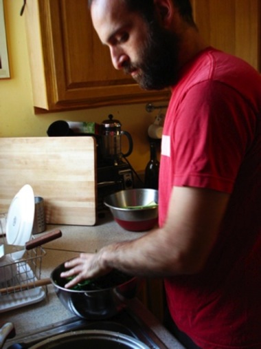 November 14, 2010On a Tuesday afternoon late in September, Leif Hedendal prepares for the twentieth meal in his Dinner Discussion series. Borlotti beans simmer on the stove as he washes nettles in the sink, plunging the greens into a stockpot of water to remove any excess dirt. He moves silently and intently from sink to counter to stovetop, slowly transforming a crate of donated produce into a meal for thirteen people.1