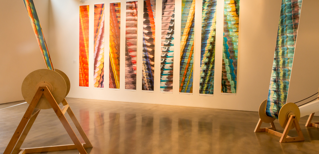Any despair over impending catastrophic environmental change evoked by Ekman Transport, or by the redwood sections and core samples, is balanced by a full-out sense of wonder and possibility. If the ocean casting evokes the endlessness and pointlessness of mass consumption, Berlier’s recoveries and re-conceptions make consumption pointed. They uncover its archeology, connecting what we consume back to how those things are made and to the meaning of that making. Berlier is not arguing for consumption, surely. But the unexpected marriages her work stages between culture and nature, camp and craft, and obsolescent and forward-looking technologies—not to mention the many sheer how-did-she-do-that? moments throughout Erased Loop Random Walk—certainly reveal something to love in our desires.