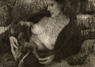 In contrast to Heinecken’s appropriation of then-current media, Teske’s soft-focus images are throwbacks to archaic representations of women as either objects of sexual desire or maternal figures. In Teske’s Jane Lawrence composite, Zuma Beach, California (1960s) a woman reclines against rocks in the manner of a classical nude. She cradles a phallic piece of driftwood that seems to both emerge from and enter her midriff, suggesting birth or intercourse. Additionally, in Francis Walker Montrose composite Mono Lake (1976), the titular subject appears to hover over Mono Lake: a matronly apparation with her hair pulled back and wearing a Victorian lace bertha. Placed among the clouds, the woman takes on an all-seeing or spirit-like aspect. Bill Allard, Vicky Palermo composite with Poppy (1964), in contrast, is a picture of sexual desire. Teske superimposed a dreamy blanket of poppies over the image of the titular nude couple, with Allard admiring Palermo posed in front of a window. With their juxtapositions of natural elements, historical references, and dream-like aesthetic, Teske’s images present stereotypical representations of womanhood without question. Without challenging or taking apart these ideas in the way that Heinecken’s photograms subvert the language of advertising, Teske’s images come off as historic relics that lack any critical dialogue.