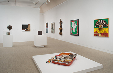 A commissioned mixed-media sculpture by Maren Hassinger and an electric sign by Sam Durant flank the exhibit’s entrance. Made of nautical rope and chain, Hassinger’s River (2011) sprawls across the floor in a snakelike S pattern directly in front of the museum gift shop. The references to the treacherous Middle Passage are as unavoidable as the piece itself. Durant’s sign, End White Supremacy (2008), demands an end to one of the reasons why these types of exhibitions are developed. Though both works evoke the past, they firmly anchor Now Dig This! in the present by posing the question of why, in 2011, must curators continue to mount these types of surveys? It is a question that Now Dig This! keeps in play, even as the thematic sections of each of the five galleries continually provide potential answers.