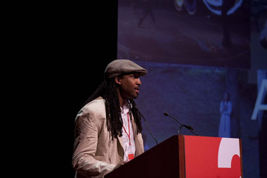 Carlton Turner of Alternate ROOTS on community initiatives in Baltimore. Creative Time Summit 3, September 23, 2011. Courtesy of Creative Time. Photo: Sam Horine.