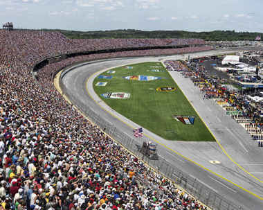 Edward Burtynsky. Talladega Speedway #1, Aaron 499 Race, Birmingham, Alabama, USA, 2009; chromogenic color print; 46 ¾ x 58 ¾ inches. Courtesy Nicholas Metivier Gallery, Toronto / Howard Greenberg & Bryce Wolkowitz, New York. © Edward Burtynsky.