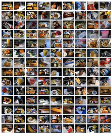 The installation is replete with visual stimulation, but one has the sense of being in a control tower. Yet, the longer one looks, the more repetitive and banal the details become. Elahi seems not only aware of this, but bent upon demonstrating it in spectacular terms—and the project is without a doubt a success in this sense. Pictures of meals eaten at restaurants, beds slept in, airports transferred through, and urinals of all shapes and sizes eventually become a rhythmic visual drumbeat. Such a consolidation of facts cannot be denied, but it cannot provide the viewer with much empathy either. It is equally difficult to compose this material into a portrait of the artist as it is to imagine the significance of transience in contemporary life. The work is trance inducing, and one imagines just how boring the life of FBI agents—and members of other agencies that monitor human actions—must be.
