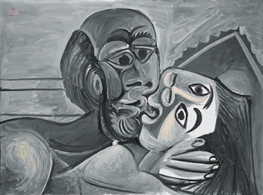Pablo Picasso. The Kiss (Le baiser), Mas Notre-Dame-de-Vie, Mougins, 1969; oil on canvas; approx. 38 x 51.25 in. Private Collection. Courtesy of The Solomon R. Guggenheim Foundation, New York. © 2012 Estate of Pablo Picasso/Artists Rights Society (ARS), New York. Photo: David Heald.