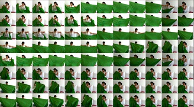Saraf’s next work, Fold (2011), was an extension of these audiovisual and conceptual tactics. A driving factor in developing this video installation was her interest in working with color. About halfway through Peel, the grid changes hues when Saraf’s outfit changes from a yellow hoodie to a magenta dress. Following this painterly aesthetic, Saraf asked herself, “What is that one really simple activity that’s everyday, that everyone can relate to, and deals with color?” At that time, Saraf had moved from Chicago to San Francisco and found herself spending a lot of time in her apartment, folding laundry. Fold is a vivid portrayal of this chore. Closely mirroring Peel in design, scale, and duration, Fold is a comparatively minimalist composition. The screens seem to transform into a large canvas that reveals the artist's past work in color field paingint and gestural abstraction. In the work, Saraf is situated on a white couch set against a white wall, dressed in jeans and a white T-shirt, folding brightly colored clothes and sheets and again humming a song. For a viewer listening to the piece with headphones, Fold is quieter—the swishing of fabric against the air interspersed with serene vocals. The grid of screens captures Saraf’s arms bent and stretched, and the cloths leap across the frame, sometimes in unison, at other points like a wave. It was like watching a ballet somehow superimposed onto a wind instrument. Tedium is transfigured. Illuminen, as Saraf has described, “is about bringing light from within.” Hers is felt in the concerts that compose this engrossing exhibition.