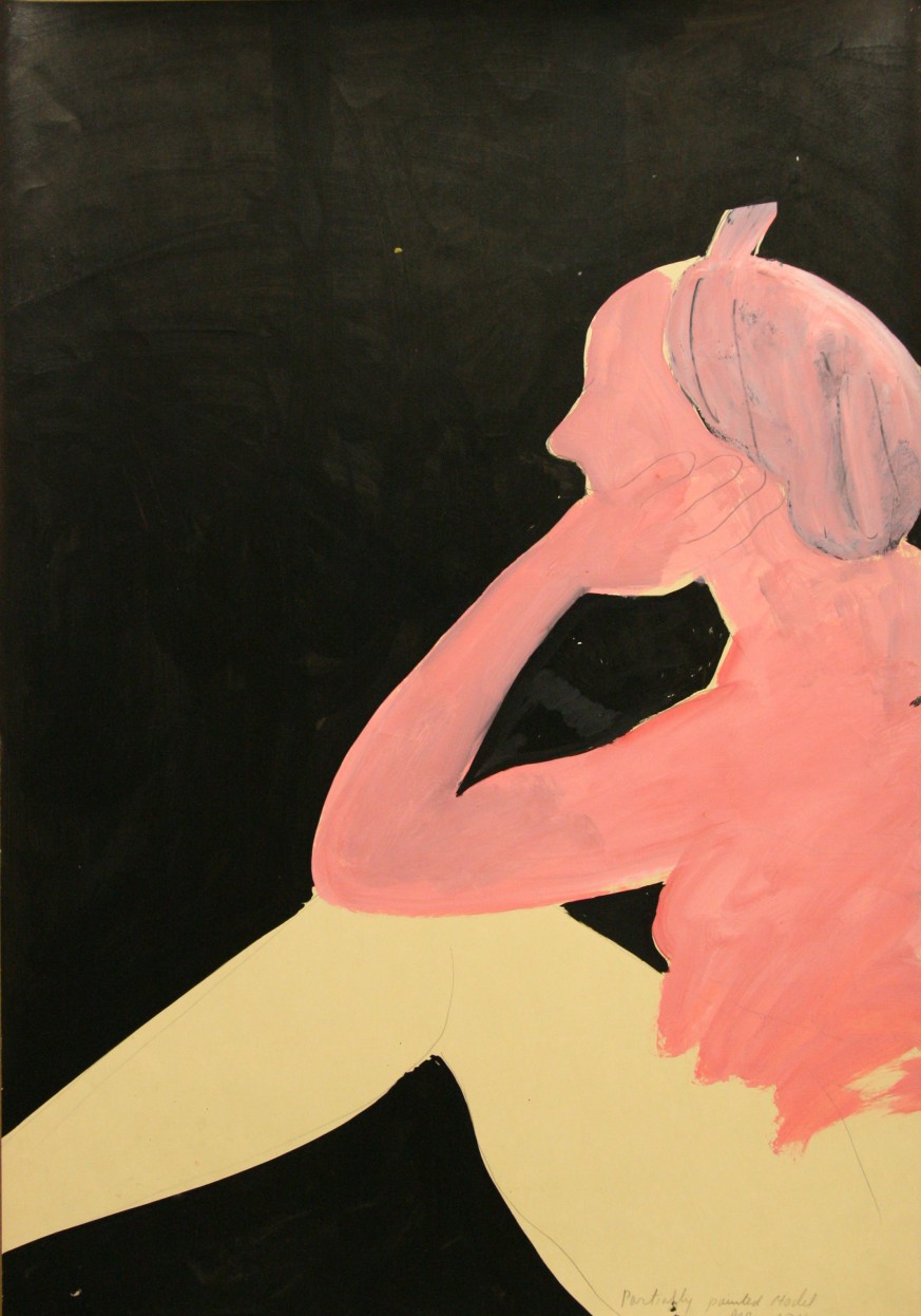 Joan Brown. Partially Painted Model, 1973; ink, graphite, acrylic on paper; 36 x 24 in. Courtesy of Gallery Paule Anglim, San Francisco.
