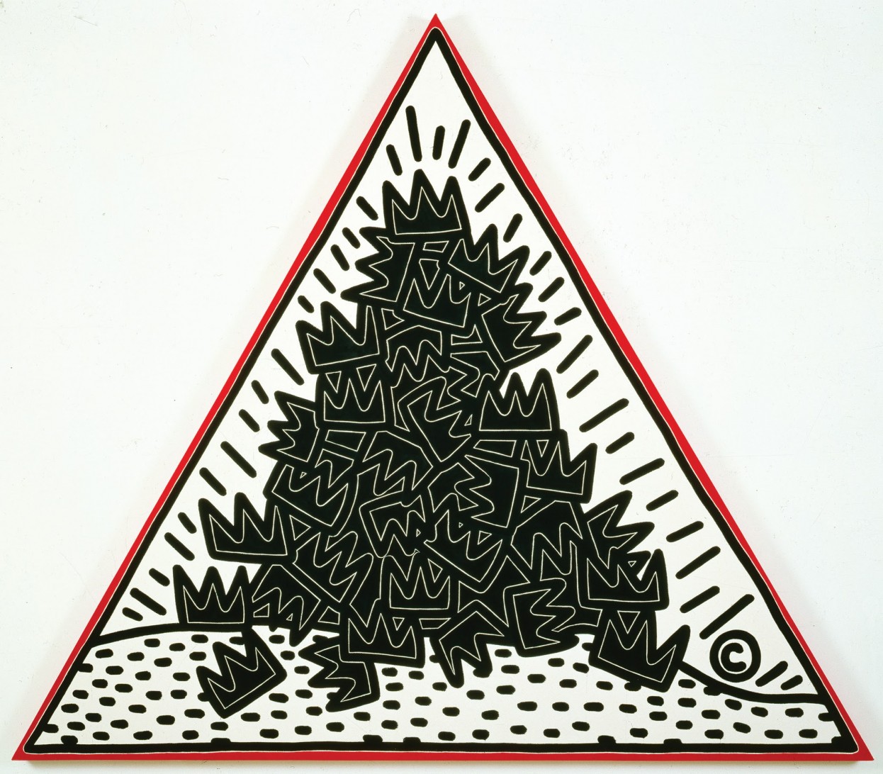 Keith Haring. A Pile of Crowns for Jean-Michel Basquiat, 1988; acrylic on canvas; 120 x 120 x 120 in. Courtesy of de Young Museum San Francisco. Collection of the Keith Haring Foundation. © 2014, Keith Haring Foundation.