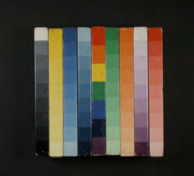 Image Bank (Vincent Trasov and Michael Morris). Colour Bar, 1972; multiple, set of seven hand-painted color bars on wood; 1.7 x 6.9 x 0.7 in. each. Courtesy of Baer Ridgway Exhibitions, San Francisco.