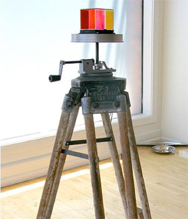 My 100-year-old Whisky, 2011; lens, surveyor's tripod, crank mechanism; 42 x 30 x 30 in. Courtesy of the Artist and Electric Works, San Francisco.