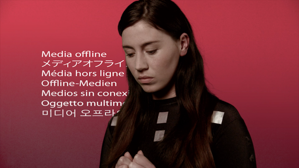 In presenting their work as a critique of representation itself, Metahaven suggest that images gain symbolic power from the multiple narratives that overlay, alter, and distort their meaning. Likewise, the juxtaposition of clips from news networks against declassified clips of military intervention from anonymous reportage sites such as War Leaker offers a contrasting study of the effect of dominant and counter narratives on public consciousness of warfare and other violent events. Additional interview clips with scholars and activists add an erudite veneer. But none of these narratives are ever fully sustained, and The Sprawl comes off less as a documentary about insurgents and propaganda machines and more as a loosely satirical take on cultures of representation. Absurdist interludes featuring actors silently posing in front of monochromatic screens with captions such as “actress claiming the right to have a perspective” bring this satire to the forefront, as do recurring animated overlays of emoticons and symbols such as dollar signs that appear throughout the film. Metahaven ultimately argues that all representation is mediated by external disruptions that affect how we respond and react to images. It’s a compelling and insightful argument, but it’s also fairly easy to glean, especially in light of the extensive curatorial and artist statements that accompany the installation, both of which leave little to the imagination.