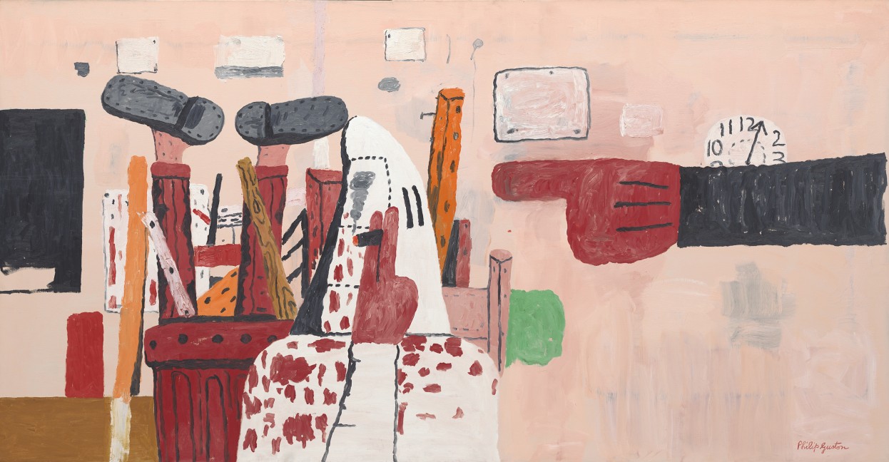 Philip Guston. Courtroom, 1970; Oil on canvas, 67 x 129 in. Collection of Robert and Jane Meyerhoff. Courtesy of National Gallery of Art, Washington, D.C. © Estate of Philip Guston.