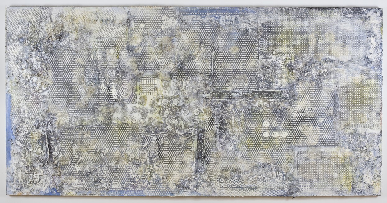Jack Whitten. Bessemer Dreamer, 1986; acrylic and mixed media on canvas; 60 x 120 in. Collection of SFMOMA; purchase, by exchange, through a fractional gift of Shirley Ross Davis. © Jack Whitten.