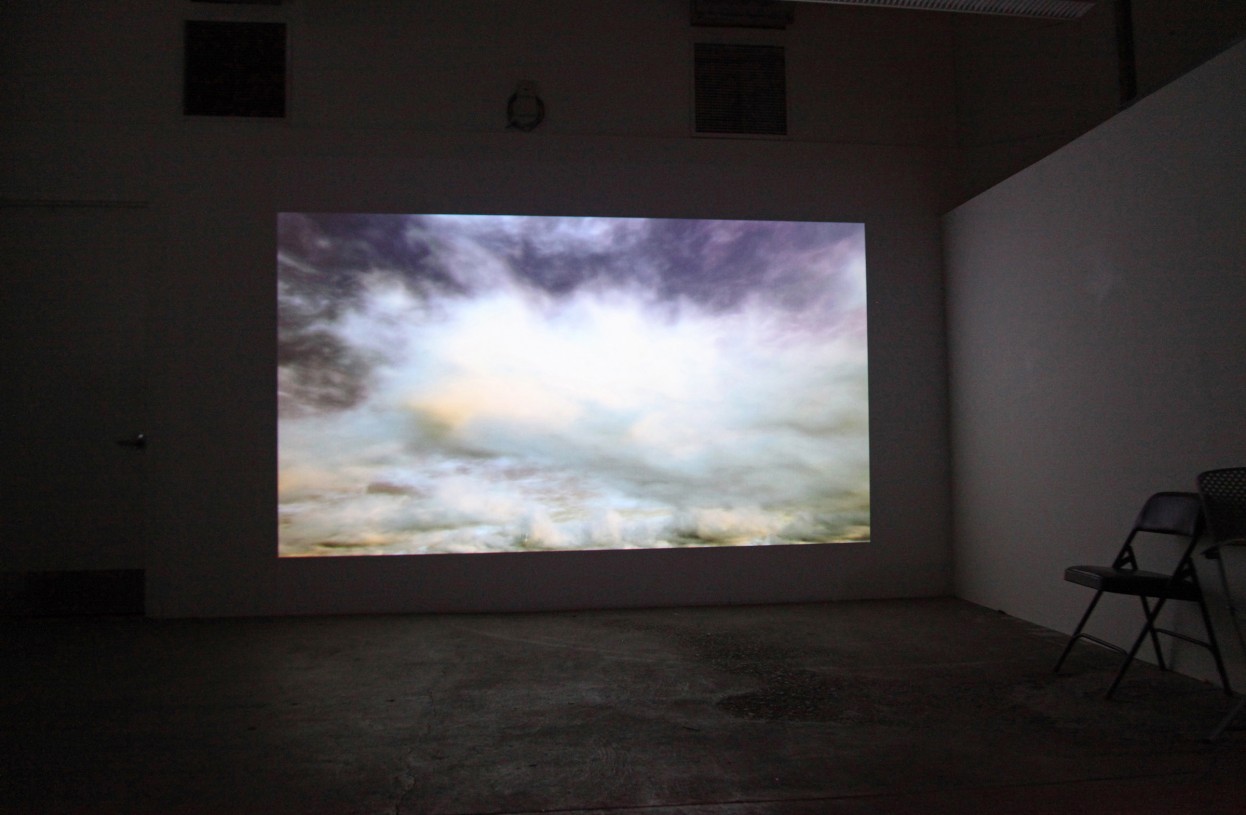 Filling the wall next to Yeh’s grid is Untitled (2012), Byron Peters’s single-image projection of an unquestionably beautiful, yet largely unremarkable sky. Peters worked with an architectural firm based in the city of Shenzhen, which specializes in digital image renderings for luxury buildings in North America. Instead of commissioning an image for a specific architectural space, Peters requested a rendering of the sky directly above the firm’s building. In exchange, the artist agreed to pay the company something equally as ephemeral: fifty “likes” of the firm’s Facebook page. The scale of the projection, combined with its dense, pastel cloudscape, imparts a sense of calm. Yet there is something eerily generic and unfinished about the image; this sky marks a specific time and place, and yet at the same time, it feels like it could be any sky. Untitled isn’t a photograph, but a digital approximation of a natural phenomenon that is itself inherently transitory and malleable. Coupled with the “deal” that brought it into being, Untitled asks what it means when both product and currency in a business transaction remain virtual.