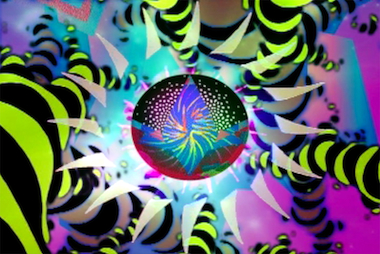 In the large room, permanently fitted out eccentrically with rows of pews, a much larger projection follows the form of the previous piece: found footage and juxtaposing found music and sound. Furnace is a bit more narrative, at least at first, with scenes of raucous crowds and a giant puppet that emanate a sense of chaos and impending violence. Rapid montage brings us back to alternating quiet and aggressive passages. The challenge when working with well-known or low-end horror footage (Linda Blair makes a brief appearance), or with treacly Peter Max colors and styles is to transcend the material to make it your own somehow. If all you have to work with is material that is commercially debased, it’s hard to make something that transcends such origins. The master of that, the late Bruce Conner, made films from found materials that thrilled the viewer by revealing the truths to be found in the recycled material, as well as building structures with the original footage that raised ideas beyond anything the found material ever referenced. Shalo P offers us tone poems in spasmodic epiphanies that are at once eye candy, a lament for a world gone wrong, and a celebration of what the world has best to offer: color and light.