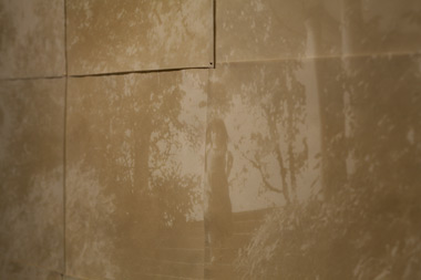 Imagining the sudden, devastating reality of losing everything, Taro Hattori realized how much he relies on physical surroundings for his sense of identity. Everything I Could Lose (2012) is a forty-five-minute video slideshow documenting each of his possessions: books, CDs, computers, photographs, chopsticks, crockery. Each item is shot unpretentiously on a desk surface, and each frame passes in the blink of an eye. The cumulative effect is a revealing portrait of the artist at a precise moment in time. Systematic and detached, it nevertheless conveys enormous empathy for the sufferers of the Japanese earthquake. Kelli Yon’s mnemonic study #1 (2012), a bichromate gum photograph on mulberry paper, has faded dramatically since its installation. It is an image of Yon’s young daughter—her hair and dress blown by the wind—running down the steps of a luxuriant garden. The single image is printed across nine unmounted, fluttering sheets, which create a fractured effect. Yon’s choices of medium, technique, and subject echo the losses inherent in the photos from Japan. She captures a transitory moment, infused with love, in an ephemeral medium that is destined to change and disappear.