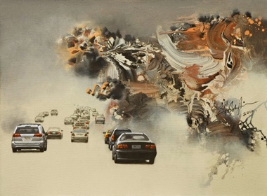 The strength with which Biao’s surreal paintings reflect on the real conditions of contemporary life is exemplified by a photograph published in the April 2011 issue of Prospect magazine, a British publication that specializes in politics and current affairs. The photograph documents traffic congestion and accompanies an article written by James Crabtree, who poses the question: “With studies showing a decline in car use, are we seeing the beginning of the end for the car?”1