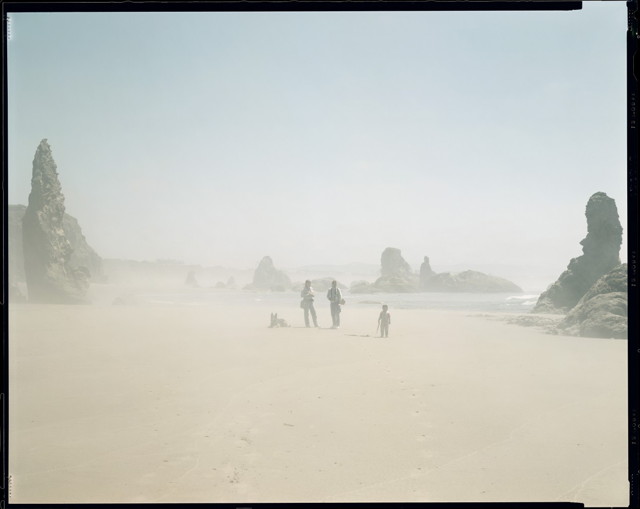 April 9 - May 30, 2015 Solo ShowThis Fraenkel Gallery survey of more than thirty years of Richard Misrach’s photography primarily features small, isolated human figures in larger land- or seascapes. In much of the artist’s most famous work (not included here), for example Cancer Alley (1998) and Desert Cantos (1981–2001), human presence is indicated through occasional signs of intervention: tire tracks, contrails, an abandoned-looking building. By contrast, in Being(s) 1975–2015, the presence of humanity is marked by actual human bodies. Ultimately, however, the vastness of the natural expanses (large bodies of water, parklands, deserts) and the conditions of weather (wind, tide, clouds) relentlessly prevail, overwhelming the tiny, tenuously balanced figures.