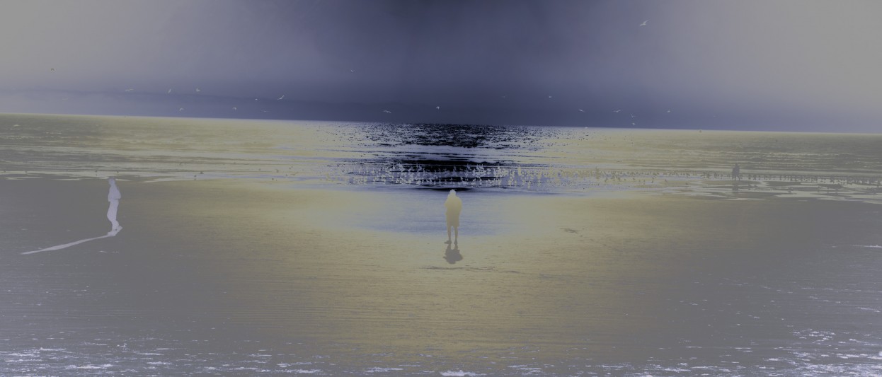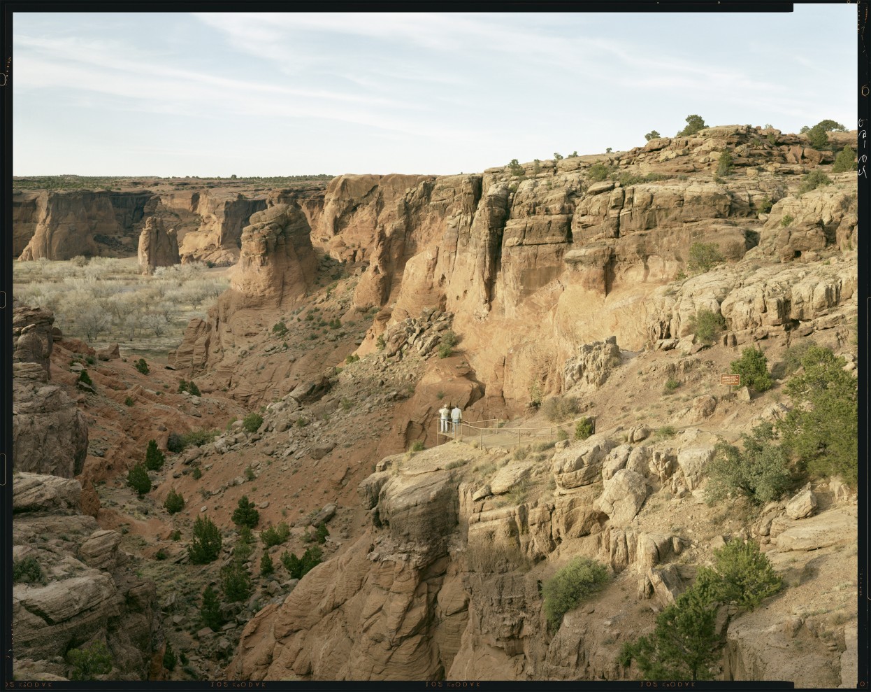 Misrach’s technical and compositional treatments produce a distancing effect that imbues the human figures with a kind of impotence. These treatments include negative reversals, polarization, silhouettes, the withholding of details of expression and individuality, and the dwarfing of human beings in proportion to their surroundings. The pathos produced by such approaches makes clear that however gorgeous the abstract colors and light might be, not to mention the physical settings themselves, we humans are extraordinarily puny and vulnerable, none of us here to stay.