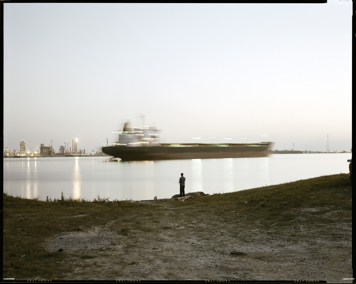 The greatest exception—or variation—on the theme of alienated figures in natural settings in this survey is the aforementioned Playas de Tijuana #1 (Crowded Beach), San Diego, California, whose gauzy colors and masked human identities are interrupted by the vertical slats of a forbiddingly tall border fence between the human subjects and their photographer (and us, the viewers). The visual barrier created by the physical barrier generates a different kind of distancing effect, resonant with the runoff of the alienation created by national borders and disparate social, cultural, and economic class positions.1 The partially hidden people enjoying themselves on the beach on a sunny day come across as dynamic and compelling despite the occlusion of so much detail regarding the individuals. There is real life here, however fragmented, vulnerable, and fenced off. The industrially produced colors of the bathers’ seaside clothes are a visual riot, and the energy imparted from so many people clearly in motion is undeniable. Other depictions of more isolated figures in this exhibition don’t quite achieve the elusiveness, vitality, and vulnerability of “being” that this last image manages to distill so intensely.