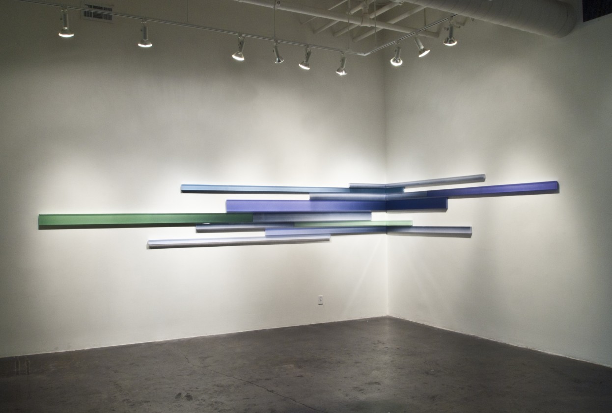 Freddy Chandra. Drift Continuum, 2015; acrylic and UV-stabilized resin on cast acrylic; 30 x 289 in. Courtesy of Brian Gross Fine Art, San Francisco. Photo: Mayumi Hamanaka.