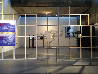 Conceptual gestures, formal responses, political propositions, and community-based projects coalesce in Temporary Structures, a surprisingly cohesive exhibition exploring architectural impermanence at the Walter and McBean Galleries at the San Francisco Art Institute (SFAI). The curators Glen Helfand and Cydney M. Payton have brought together twelve contemporary artists or artist groups, ranging from local favorites to international biennale regulars, the majority of whom have a Bay Area connection.1 The exhibition’s tone is largely optimistic, as announced by the cheerful graphics and colorful pennants by the artist-designers Roberto Behar and Rosario Marquardt at the entrance. The sense of a willingness to engage a visitor carries over into the exhibition space: several site-specific works, along with architectural renderings of the galleries sketched in grey paint onto two walls, create an intentional connection to the physical space.