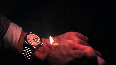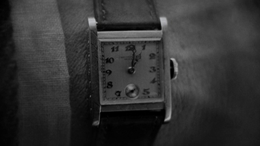 The diegetic timepieces that punctuate The Clock are frequently interspersed with scenes of hurried and harried figures responding to the pressure of time or its drawn-out elapse. The approach to 2:00 p.m. is marked by Peter Parker’s frantic drive to deliver pizzas on time in Spider-Man (2002), arriving just too late at 2:03 p.m. A glance at a watch might be followed by someone sitting at a table awaiting a meal or, around 7:00 p.m., by recurring images of a cigarette left burning in an ashtray from This Man Must Die (1969). The juxtaposition parallels how we measure time as much by habit as by the clock. We associate certain moods or actions with particular times of day—lunch break, happy hour, bedtime—that are reinforced by repetition. While The Clock deftly conjures such associations, in sometimes brilliant moments—3:00 p.m. is signaled by ringing bells and the exuberant burst of children onto school playgrounds, and the 7:00 p.m. hour is poignantly marked both by preparations for evening soirees and by a person waiting for the phone call from someone who has yet to return home—it doesn’t supplant them. We can leave and return to the video, and in the ensuing time between viewings, we have eaten and slept and worked and played, but in The Clock, Angelina Jolie will forever at 1:29 p.m. stand atop a lookout tower, peering through binoculars, and then look at her watch. Our experiences, including our experiences of viewing these films in their entirety, do not permeate or alter the mood that The Clock affixes to a particular moment.